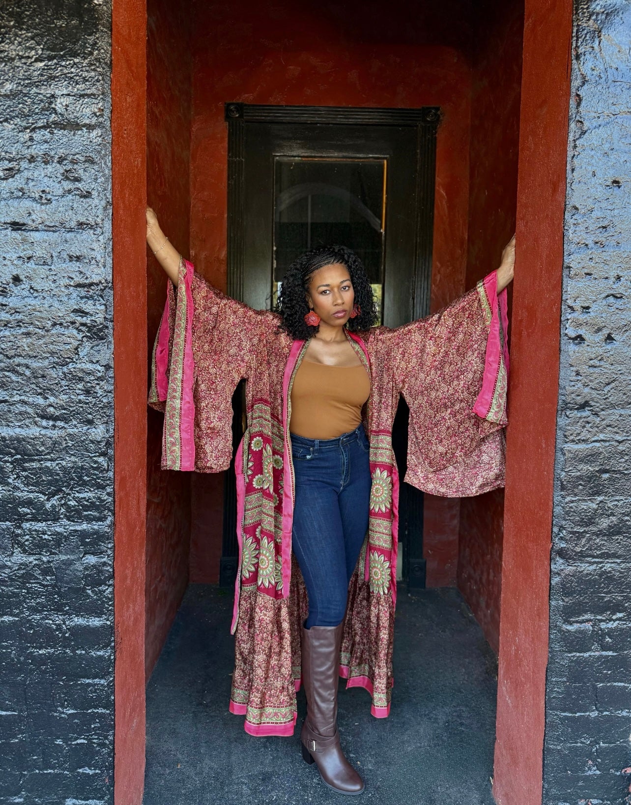 What makes Fabulina Designs special is our commitment to craftsmanship and individuality. Every design tells a story through the rich textures of our jewelry or the flowing elegance of our kimonos. We bring elements from different parts of the world together to craft pieces that empower, inspire confidence, and embrace the free-spirited essence of boho-chic fashion.