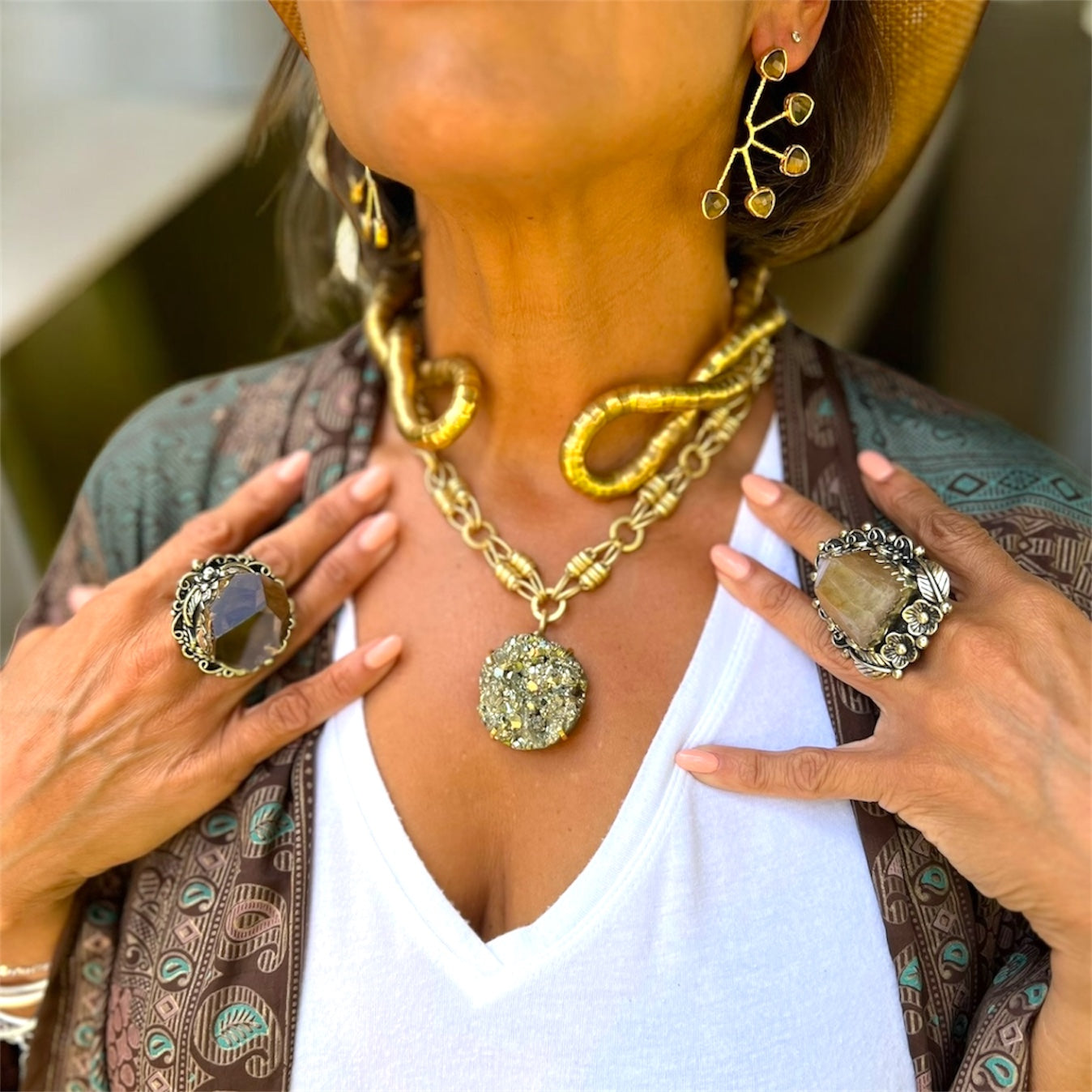 Fabulina Designs is a boho-chic jewelry and accessory brand that celebrates the beauty of handcrafted artistry. We create handmade jewelry, luxurious silk kimonos, and hats blending natural stones, resin, and unique materials sourced from around the world. Each piece is thoughtfully designed to bring together diverse cultural influences, creating a collection that is both timeless and globally inspired by our travels.