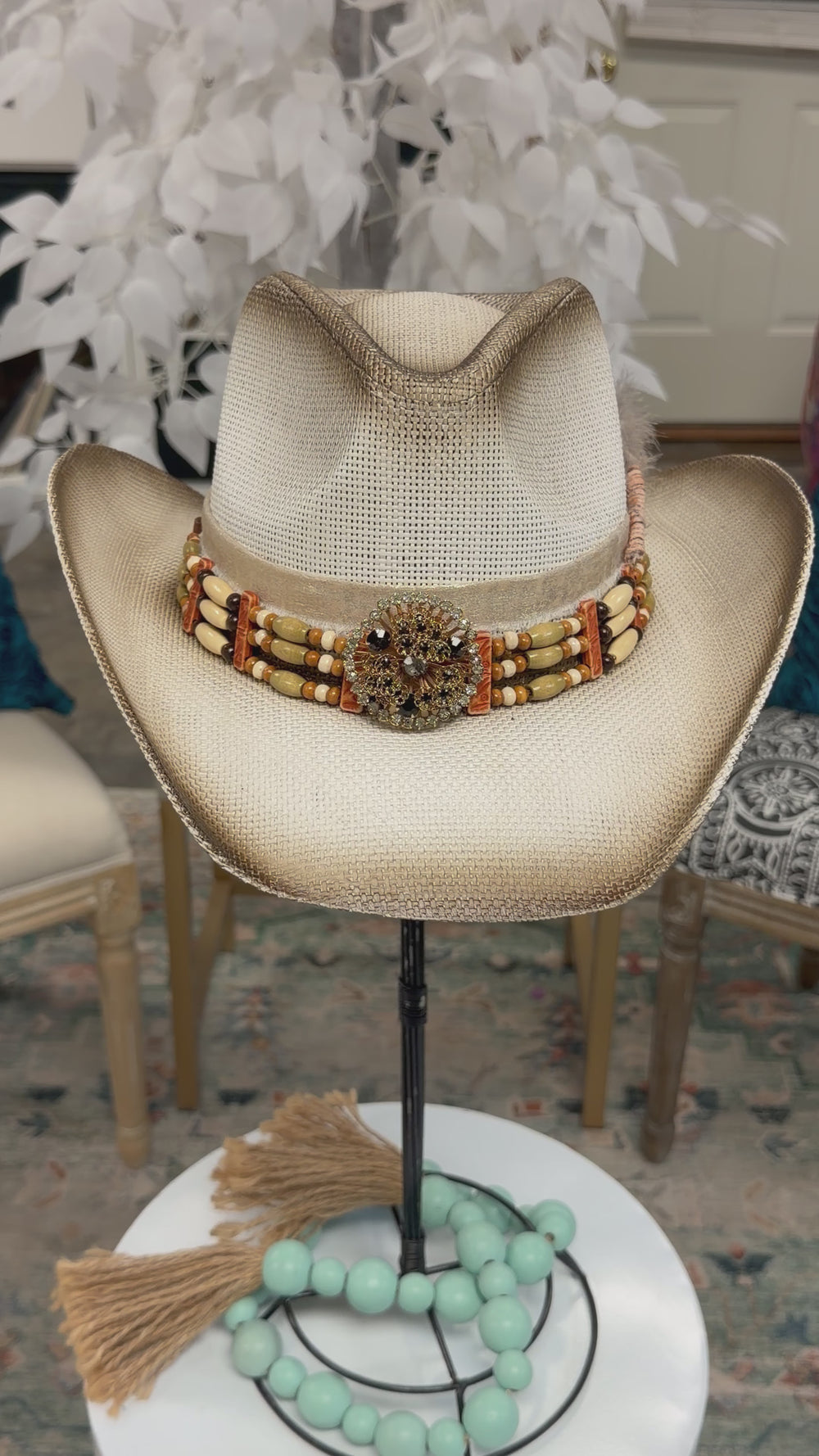 Complete your look with our boho luxe western hat collection, a fun assortment of headwear that combines fashion and function. Explore a variety of styles to accentuate your personal style. Each hat we make is one of a kind, Being unique is out mission.