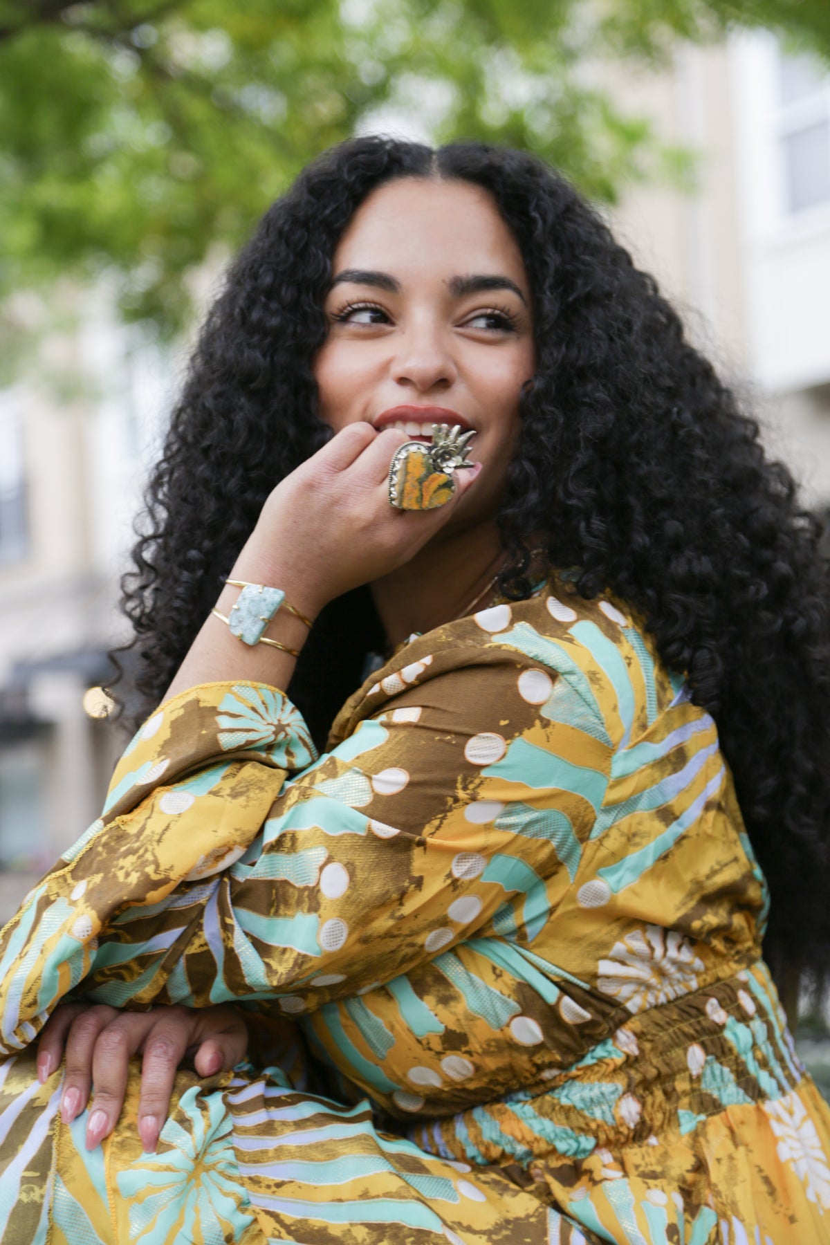This radiant Bumblebee Jasper ring bursts with the colors of sunshine and earth — swirls of gold, orange, and gray representing strength and transformation. Set in detailed Tibetan silver, the heart-shaped stone is crowned with a sacred floral design, symbolizing divine love and creativity. A bold boho-luxe statement that embodies both grounding and joy.