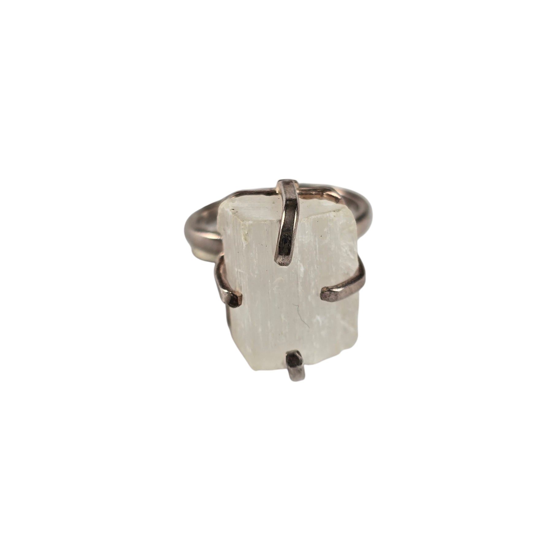 Details: - Selenite stone - All rings are adjustable, can fit any size finger - All rings are one of a kind. Each ring will vary slightly in shape color and/or size